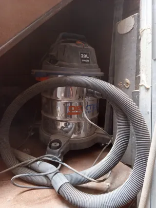 Aspirador industrial con una capacidad de 20 litros y una potencia de 1400W. Apenas usado. - Depósito de acero inoxidable. - Manguera flexible de gran longitud. - Ruedas para fácil movilidad.