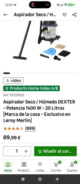 Aspirador industrial versátil para uso en seco y húmedo a batería. Se puede utilizar como soplador.1 manguera de succión (1,6 m), 1 succionador, 1 boquilla para suelo, 1 boquilla para uso doméstico, 1 mango con regulador de aire, 1 tubo de succión (3 piezas), 1 filtro de papel, 1 filtro de papel plisado y 1 filtro de espuma (para filtro de espuma (para succión húmeda) Potencia de succión: 9 kPa (90 mbar) Capacidad del depósito: 20 l Estable y fácil de maniobrar gracias a 5 ruedas Dispositivo compatible con las baterías de la serie PARKSIDE X20 V NO INCLUIDA. 44,1 x 39,8 x 50,7 cm. Peso5,45 kg Precio en Amazon 129€.A ESTRENAR