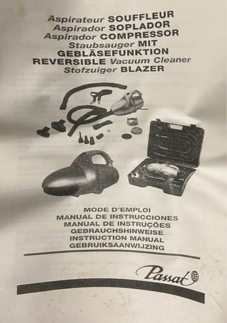 Aspirador Soplador Passat en perfecto estado. Incluye varios accesorios. Funciona como aspiradora y soplador. - Ideal para limpieza de hogar y jardín. - Incluye manual de instrucciones en varios idiomas. - Caja de transporte robusta.