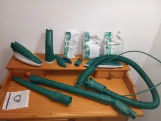 Se vende aspiradora Vorwerk Kobold VK150 con todos los accesorios, la mayoría sin estrenar y con más de 50 recambios. - Aspiradora - Múltiples accesorios para limpieza. - 2 Bolsas de transporte. - 3 cabezales - Detalles en foto