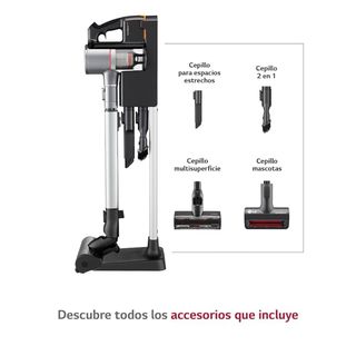 Aspiradora LG de 2000W con varios accesorios. - Incluye manguera flexible. - Tubo telescópico. - Cepillo principal. - Boquilla para rincones. - Cepillo pequeño.