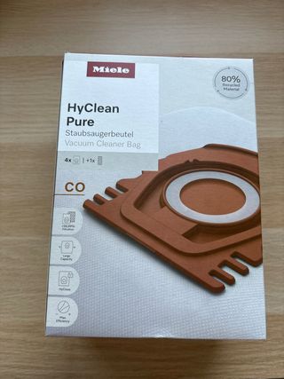 Paquete de bolsas para aspiradora Miele HyClean Pure. - 4 bolsas + 1 filtro. - Filtración >99,99%. - Alta capacidad. - Cierre HyClose. - Máxima eficiencia. - Fabricado con 80% de material reciclado.