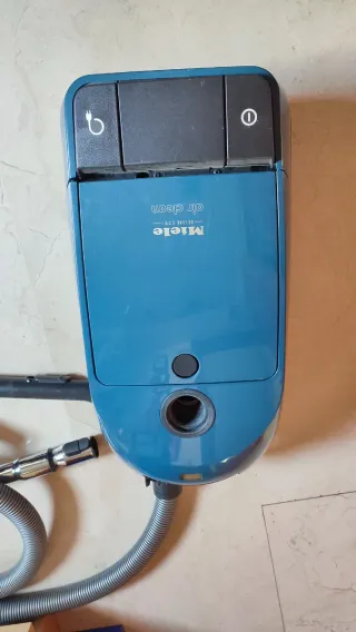 Aspirador Miele de color azul, en buen estado y listo para usar. Incluye varios accesorios para una limpieza completa. - Aspirador Miele - Manguera - Tubo de succión - Cepillo principal - Bolsa de repuesto HyClean - Bolsa de repuesto adicional