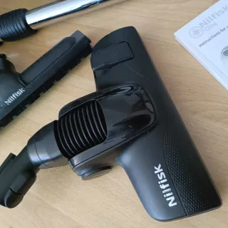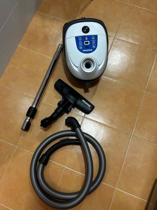 Aspiradora Nilfisk One clean air de Nilfisk con filtro HEPA 13, ideal para hogares con mascotas. Su diseño compacto y ligero facilita su manejo y almacenamiento. - Incluye varios accesorios. - Tubo telescópico. - Manguera flexible. Muy bien cuidada. En buen estado. Funciona perfectamente. En su caja original.