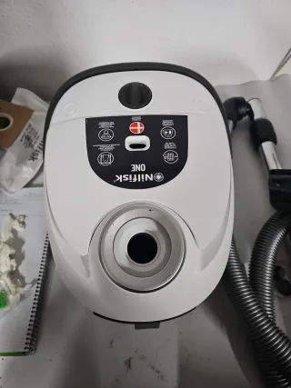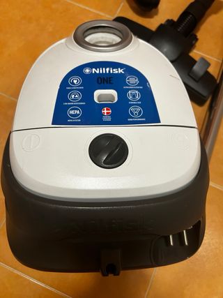 Se vende aspiradora Nilfisk ONE en buen estado, junto con sus accesorios. - Incluye cepillo principal y accesorio para ranuras. - Se acompaña de una caja de 5 bolsas para el polvo y pre-filtro. - Manguera flexible y tubo telescópico.
