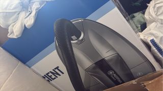Aspiradora Nilfisk Select en su embalaje original. Un diseño moderno y funcional. - Color gris metalizado. - Manguera flexible negra.