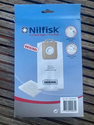 5 bolsas para aspiradora Nilfisk + 1 prefiltro. Son bolsas nuevas y originales Nilfisk, en su caja. - 5 bolsas de polvo Nilfisk originales. - 1 prefiltro.