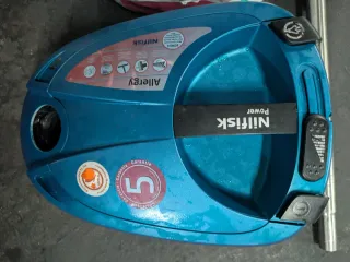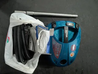Aspirador Nilfisk Power Allergy en color azul. Lleva alguna bolsa de recambio nueva - Incluye tubo metálico. - Manguera flexible. - Bolsa de plástico.
