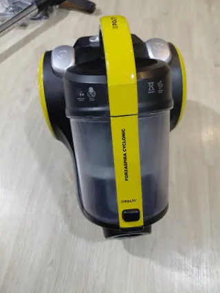 Aspiradora de la marca Polti, modelo Forzaspiras. - Diseño en color negro y amarillo. - Depósito transparente. - Asa de transporte. - Manguera flexible. Funcionan perfectamente