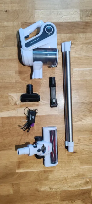 Aspiradora vertical Polti Forzaspira Slim Sin Cables, diseñada para una limpieza eficiente.Diseño ligero y moderno. No Tiene un año de uso, muy cuidada. Precio Negociable - Cuerpo principal blanco y gris. - Tubo de extensión plateado. - Cepillo principal motorizado con rodillo. - 2 cepillos diferentes funciones - Cargador de corriente. - Caja tengo que buscarla