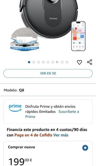 Marcaproscenic Nombre del modeloQ8 Recomendación de superficieTodo tipo de suelos y alfombras Función especialControl de aplicaciones, filtro Hepa ColorNegro Dimensiones del producto32l. x 32an. x 9,7al. centímetros 【Navegación LiDAR con Mapeo Preciso】Gracias a la navegación LiDAR de 360°, el robot mapea tu hogar con rapidez y precisión, sorteando obstáculos de día y de noche. Crea mapas de hasta 5 pisos y personaliza la limpieza para cada habitación. En 10-15 minutos, el robot tiene un mapa completo para una limpieza óptima. 【Perfecta Limpieza profunda】Con una potente succión de 4.500 Pa y filtro de alta eficiencia