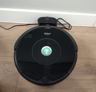 Aspiradora Roomba marca iRobot 606 en buen estado. Funciona como el primer día. Tiene marcas de uso eso si pero yo creo q tienes roomba para unos años mas. - Modelo iRobot 606. - Incluye base de carga y cable de alimentación. - Diseño elegante y compacto. -Todas las piezas funcionando y en buen estado. Nuevo vale 239€ acabo de ver.