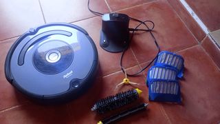 Vendo mi Roomba 606, un robot aspirador en buen estado. Es de color azul oscuro y se incluye con su base de carga, dos filtros y dos cepillos laterales, ademas de los ya puestos. Funciona perfectamente. Autonomia de 45 minutos. - Incluye base de carga. - 2 filtros de repuesto. - 2 cepillos laterales.