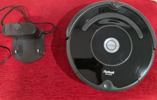Robot aspirador Roomba modelo 606. -Bateria rota por tenerlo en un apartamento de verano. Lo compré al acabar el verano y como en invierno no se usa la batería se ha roto, por lo demás está nuevo. - Color negro. - Diseño redondo.