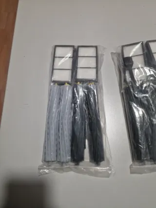 Set de repuestos para aspiradoras iRobot Roomba de las series 800 y 900. Vienen empaquetados en su plástico original y sin abrir. - Dos filtros - Kit de dos cepillos.