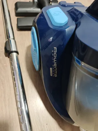 Aspirador Rowenta Swift Power Cyclonic en color azul. - Tecnología ciclónica para una limpieza eficiente. - Diseño compacto y ligero. - Incluye varios accesorios para diferentes superficies. Solo que tienes comprar un filtro filtros se compra.Aparte es mui poco uzado va muy bien