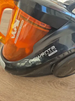 Aspirador Rowenta Compact Power en color negro y naranja. Funciona perfectamente. Lo vendemos porque hemos comprado uno de bateria. Con recambios nuevos de filtros incluido. - Manguera flexible. - Tubo extensible. - Cepillo principal. - Cepillo pequeño.