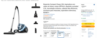 ❌ Precio Amazon: 121,98€ 💰 Nuestro precio: 75,00€ Peso: 5,1 kg ASIN: B083PCSNN9 La Rowenta RO4871 es una aspiradora sin bolsa potente y compacta con tecnología ciclónica. Su motor EffiTech de 550W garantiza una limpieza profunda en suelos duros y alfombras con bajo consumo. Incluye accesorios Animal Care para recoger pelo de mascota y un depósito de 1,5L de fácil vaciado. Su sistema de filtración avanzada captura el 99,98% del polvo, asegurando un ambiente más limpio. Ideal para hogares que buscan eficacia en poco espacio. El producto es completamente nuevo, solo se ha abierto y usado para comprobar su estado.