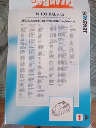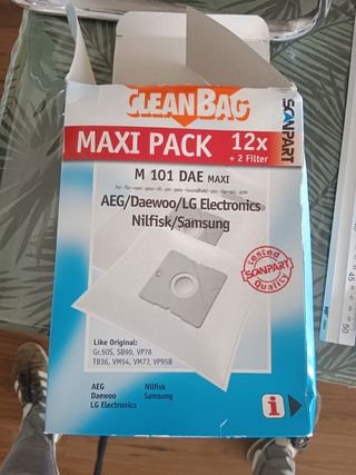 Bolsa aspirador AEG DAEWOO LG NILFISK SAMSUNG pack abierto, pero sin usar ya que se me rompió el aparato. Quedan 8 bolsas y 2 filtros NUEVOS.
