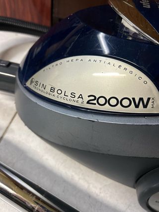 Aspirador Ufesa Cycletron con tecnología Cyclone 2 y filtro HEPA antialérgico. へ - Potencia de 2000W. - Sin bolsa. - Filtro HEPA antialérgico. - Tecnología Cyclone 2. - Modelo Cycletron Power M Parquet Plus. El aspirador Ufesa Cycletron 2000W se destaca por su potente motor de 2000W, que garantiza una aspiración eficiente y potente en todo tipo de superficies. Además, cuenta con un sistema de filtrado avanzado que retiene incluso las partículas más pequeñas Estado: Tiene marcas estéticas por el uso normal (el recubrimiento del mango esta algo desgastado), pero mecánicamente va perfecto. Se entrega limpio y listo para usar.