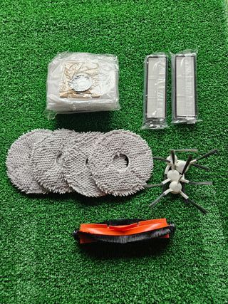 Kit de repuestos para robot aspirador Xiaomi. - Bolsa para el polvo. - Filtros HEPA. - Cepillo principal. - Cepillos laterales. - Mopas de limpieza.