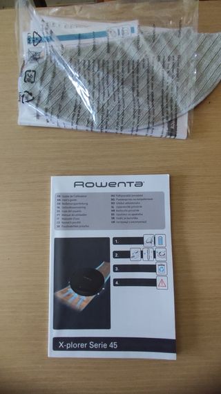 Aspiradora robot Rowenta X-Plorer Serie 45 en perfecto estado. Apenas usada. - Incluye base de carga y manual de instrucciones. - Diseño compacto y elegante en color negro. - Ideal para limpiar todo tipo de suelos.