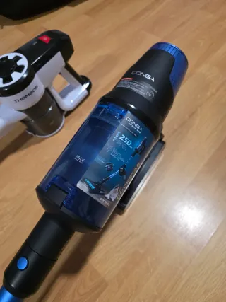 Dos aspiradoras para piezas o reparación. Conga: tiene un poco flojo la bateria y por eso a veces da error e6. Sin cargador Thomson: no le funciona el cepillo aspirador. Sin cargador Precio por ambos