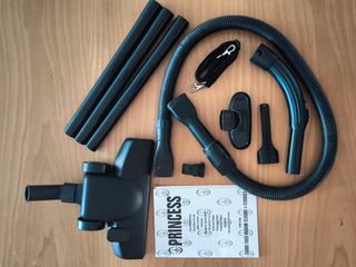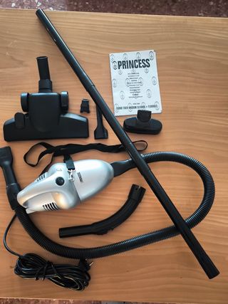 Aspirador portátil de la marca Princess, modelo Turbo Tiger. - Incluye varios accesorios para diferentes usos. - Tubo de extensión largo. - Manguera flexible. - Cepillo suelos - Boquilla teclado - Cepillo tapicería - 700W # Aspirador # Pincess # Potatil