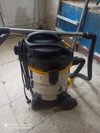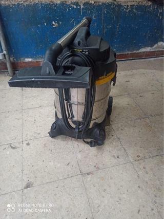 Aspiradora Kärcher modelo 2201 F. Se vende aspiradora profesional para sólidos y líquidos, muy robusta y potente, ideal para taller, obra o garaje. ⚠️ La aspiradora aparece sucia en la foto, pero ya ha sido limpiada. Funciona correctamente y presenta marcas normales de uso que no afectan en absoluto a su funcionamiento. - Color gris y amarillo. - Manguera negra corrugada.