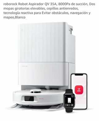 Aspirador robot Roborock QV 35A en color blanco. Aun con 1 año de garantía con factura de compra. Se vende por poco uso con todos sus accesorios. - 8000Pa de succión. - Dos mopas giratorias elevables. - Cepillos antienredos. - Tecnología reactiva para evitar obstáculos. - Navegación y mapeo.