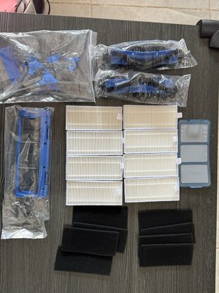 Kit de accesorios y repuestos para aspiradora robot. - Cepillos laterales -Filtros HEPA -Paños de limpieza -Contenedor de polvo