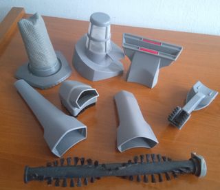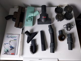 Conjunto de accesorios para aspiradora Solac, incluyendo el depósito, tubos y varios cepillos. 3€ cada pieza, 10 € lote