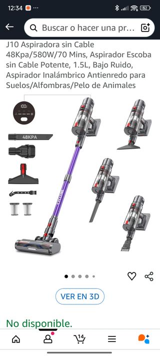 Aspirador inalámbrico Aurun J10 con una potencia de succión de 48Kpa. Su diseño es ligero y ergonómico. - Potencia: 48Kpa - Autonomía: 70 minutos - Capacidad del depósito: 1.5L - Bajo nivel de ruido - Ideal para suelos, alfombras y pelo de animales. 1 año de uso, 2 años casi de garantía por Amazon