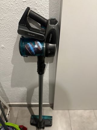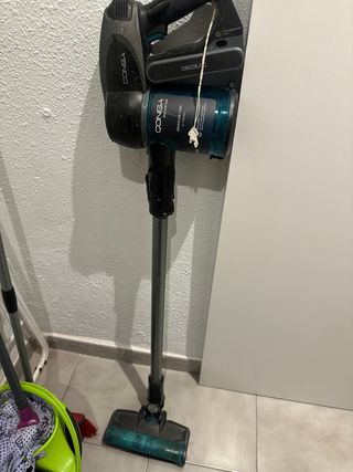 Aspiradora escoba Cecotec Conga Rockstar 1200 X-Treme. Aspira correctamente. El plástico que conecta el motor con el tubo está roto, actualmente sujeto con celo y aguanta, pero sería recomendable reparar o cambiar la pieza. Se puede reparar Se vende tal cual. - Diseño ligero y ergonómico. - Incluye accesorios para diferentes superficies. - Depósito de gran capacidad.