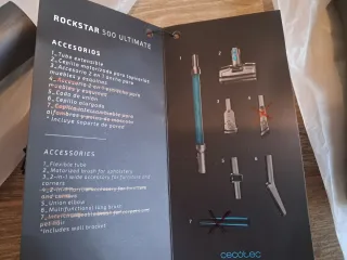 Conga de mano rockstar 500 ultimate y ascesorios. La aspiradora no funciona bien porque la batería dura muy poco (puedes cambiarla). Falta el palo largo y el rodillo principal porque lo vendí (por eso no aparecen en la foto). Los accesorios están nuevos: -cepillo jalisco -cepillo motorizado para tapicería -tubo extensible -accesorio 2 en 1 para muebles y esquinas -codo de unión -cepillo alargado -SOPORTE DE PARED -CABLE DE CARGA Se vende el pack completo. PREGUNTA SIN COMPROMISO.