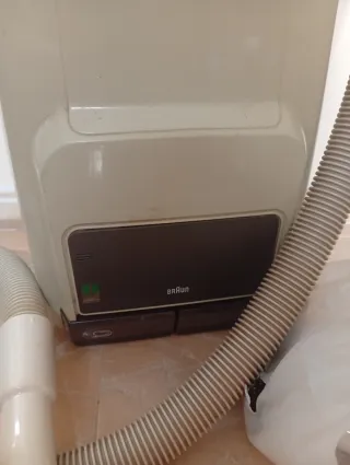 Aspiradora de la marca Braun en color beige, con su manguera. - Diseño clásico. - Manguera flexible. - Varios cabezales
