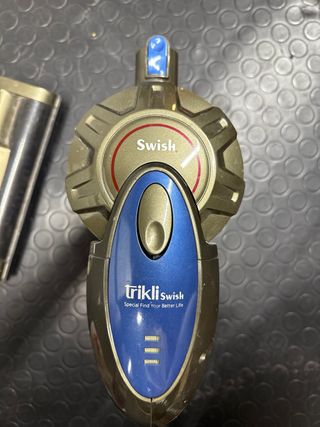Aspiradora Trikli Swish en color azul y gris. - Mango telescópico. - Cabezal de aspiración. - Unidad de motor con depósito.