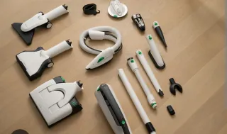 Aspirador VersLife S6 Pro en color blanco y gris, con un diseño moderno y ligero. - Aspirador escoba sin cable. - Incluye accesorios para diferentes superficies. - Batería recargable.