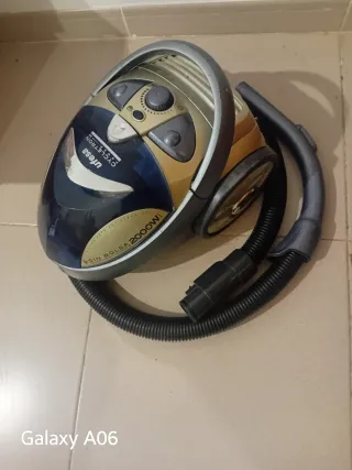 Aspirador de trineo UFESA con tecnología Cyclon. - Potencia de 2000W. - Sistema sin bolsa. - Diseño en color dorado y azul. Lo que sea ve en la foto, ideal para vehículos
