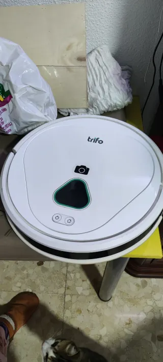 Aspirador robot Trifo, para piezas o reparación. Su diseño es blanco y circular. Funcionar funciona pero la batería se le acaba muy rápido, obviamente va con su estación de carga. Estéticamente está en buen estado. Lo vendo para piezas porque realmente dura limpiando como 15/20 minutos.
