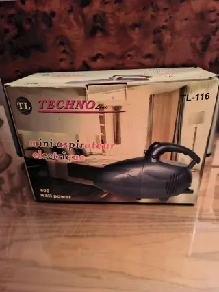 Mini aspirador eléctrico de la marca Techno Line, modelo TL-116. Es compacto y fácil de usar. - Potencia de 800 vatios.