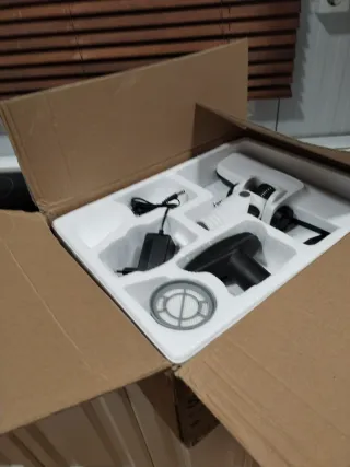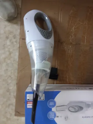 Aspiradora portátil de color blanco y negro, ideal para una limpieza rápida y eficiente. - Diseño ligero y ergonómico. - Incluye todos los accesorios,cargador y filtro de repuesto.sin estrenar