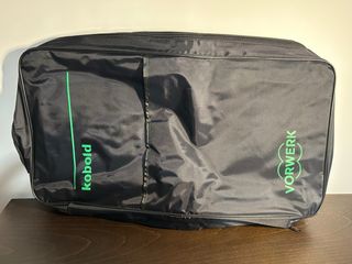 Bolsa de transporte negra para aspiradora Kobold. - Diseño en color negro. - Logo de Vorwerk en color verde. - Logo de Kobold en color verde.