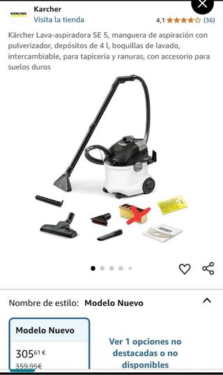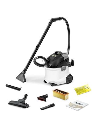 SIN 1 Filtro, se ve en la segunda foto. Kärcher Lava-aspiradora SE 5, manguera de aspiración con pulverizador, depósitos de 4 l, boquillas de lavado, intercambiable, para tapicería y ranuras, con accesorio para suelos duros
