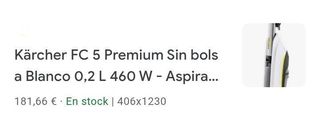 ! tiene un pequeño desperfecto! Kärcher Fregona Eléctrica FC 5 Con cable, máxima comodidad en la limpieza de suelos duros, elimina la suciedad en un solo paso, secado rápido Marca Kärcher Color blanco Volumen del contenedor 400 ml Dimensiones 320 x 270 x 1220 mm Modelo (Versión) 1.055-560.0 Devuelva la frescura a sus suelos duros con la aspiradora Kärcher FC 5 Premium blanca renovada. Diseñada para hogares con mucho movimiento y con resultados brillantes, esta aspiradora en seco y húmedo simplifica la limpieza y facilita el cuidado de cada rincón de su hogar. Elija una forma más inteligente y ecológica de mantener sus suelos relucie