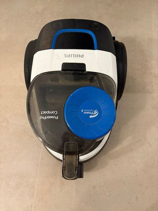 Aspirador de la marca Philips con tecnología Power Cyclone 5. Se encuentra en buen estado. - Diseño compacto. - Depósito de fácil vaciado.