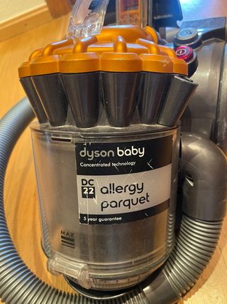 Aspirador Dyson DC22 Allergy Parquet en color naranja y gris. - Tecnología concentrada. - Incluye manguera. EL ASPIRADOR ESTÁ AVERIADO, pero se vende entero por si alguien lo supiera arreglar o estuviera interesado. El fallo es algo del motor, pero no es seguro. Precio negociable