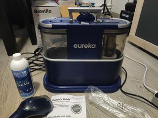 Eureka Aspirador de alfombras | Limpiador de Manchas Multisuperficie para Alfombras, Moquetas, Tapicería, Escaleras y Coche | Depósito de Agua Grande de 1,5L, NEY100 con Fórmula Limpiadora, Azul.