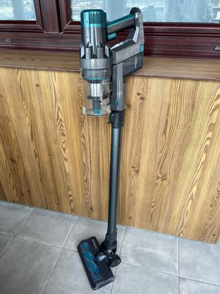 Aspirador escoba inalámbrico ASPIRA PRO de la marca Samba, en perfecto estado. - Aspirador vertical y de mano. - Incluye dos niveles de potencia. - Con luz LED. - Cepillo para tapicería incluido. - Incluye cargador.