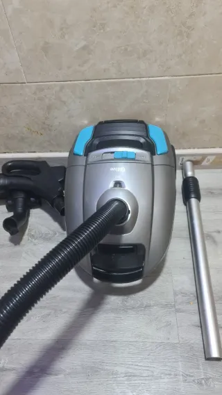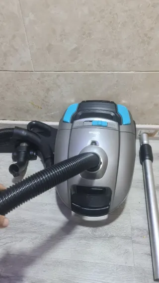 Aspirador Philips T302 en perfecto estado, como nuevo. Ideal para mantener tu hogar limpio. - Diseño compacto y ligero. - Manguera flexible para mayor alcance. - Incluye cepillo para suelos. - Modelo años 90 - En una esquina lleva logotipo Farías en pequeño
